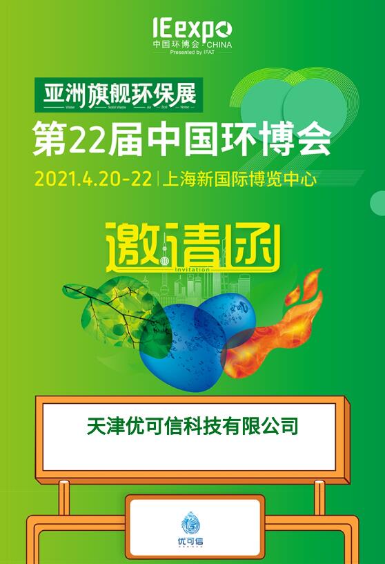 4月20-22日,上海環(huán)博會——天津優(yōu)可信與您相約新國際博覽中心E5館G86展位